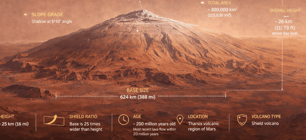 They’re on Mars. And the absolute giant among them is Olympus Mons — the tallest mountain in the Solar System.